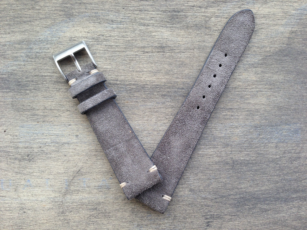Handmade Suede Mid Grey Leather watch Strap